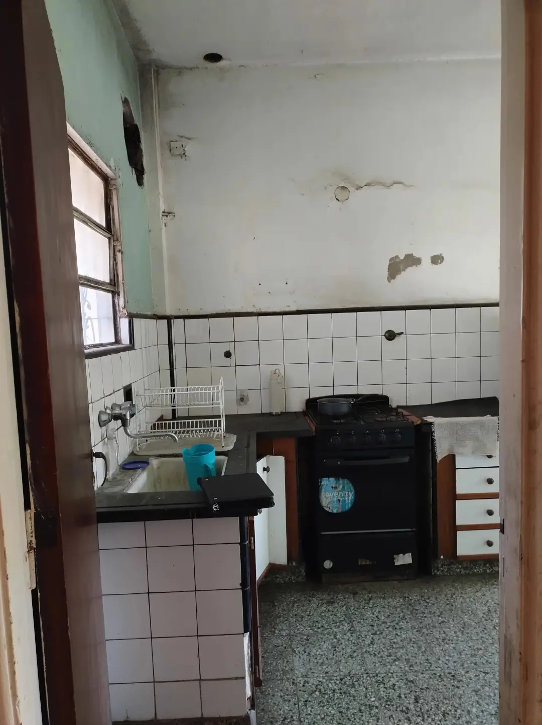 En primer piso, con entrada desde calle Córdoba amplio y luminoso departamento a reciclar. Se accede por escalera que da a un distribuidor que conecta con pequeño patio con parrilla, termotanque y pileta de patio. Desde una puerta corrediza tipo madera, lugar para lavadero. Cocina separada, muy luminosa con piso de granito. Baño completo. Por un pasillo lateral se accede a importante y luminoso living comedor con amplios ventanales y balcón que ocupa toda la ochava. Dos dormitorios, uno con puerta con salida a balcón y otro con generosa ventana. Todas las ventanas con persianas enrollables. Sobre calle Córdoba terreno libre con pequeño depósito y con portón de entrada. Superficie del terreno 122,86 m2.